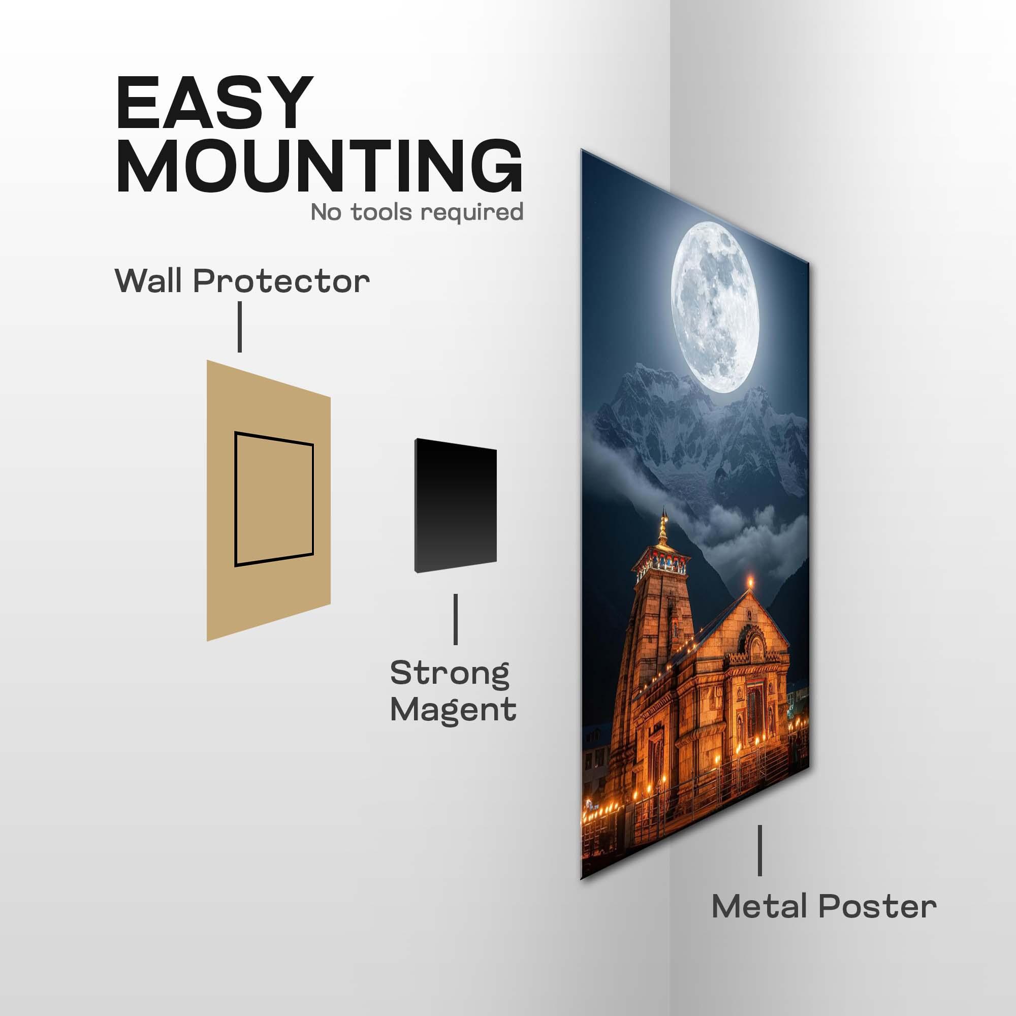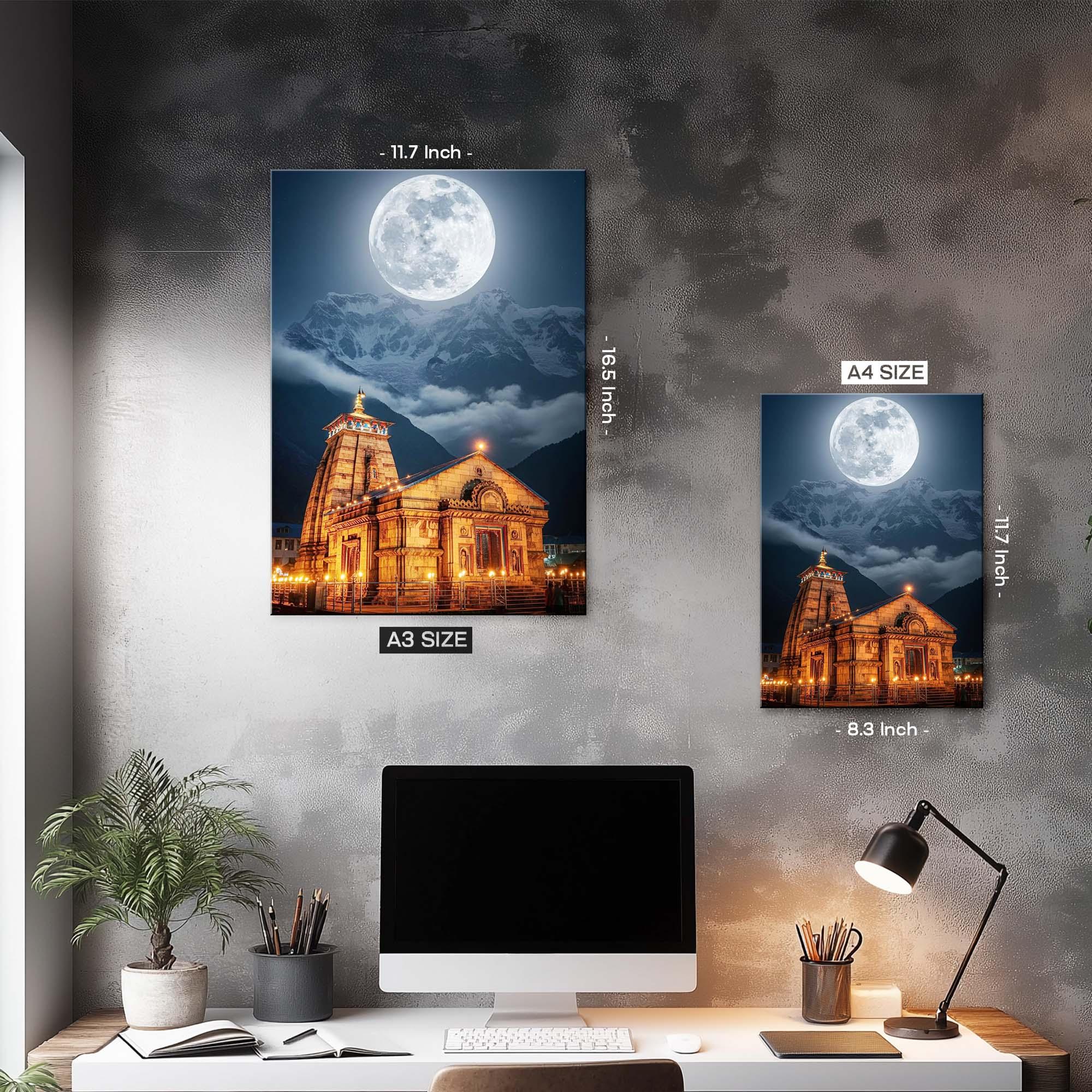 Kedarnath Mahadev: Celestial Stillness under the Full Moon Edition Metal Poster.
