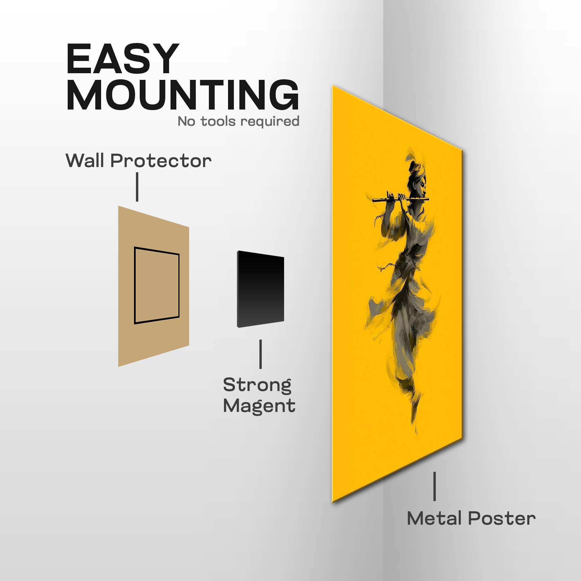 Bring home the Krishna: The Golden Melody Metal Poster and let the divine music of Shree Krishna fill your surroundings with bliss, harmony, and spiritual upliftment.