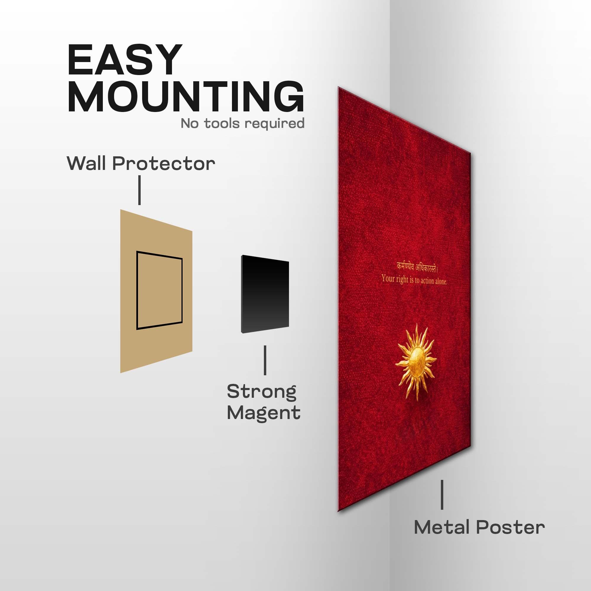 Rendered in an elegant divine metal-poster aesthetic, this piece is not just visual philosophy—it is a daily invocation of discipline, clarity, and fearless action.