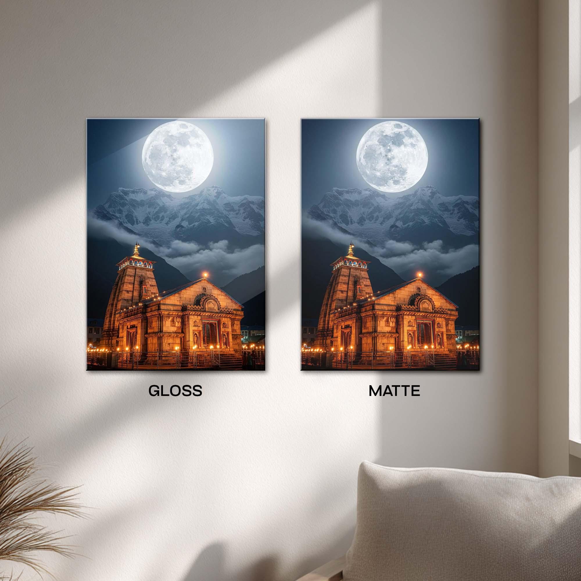 Kedarnath Mahadev: Celestial Stillness under the Full Moon Edition Metal Poster.