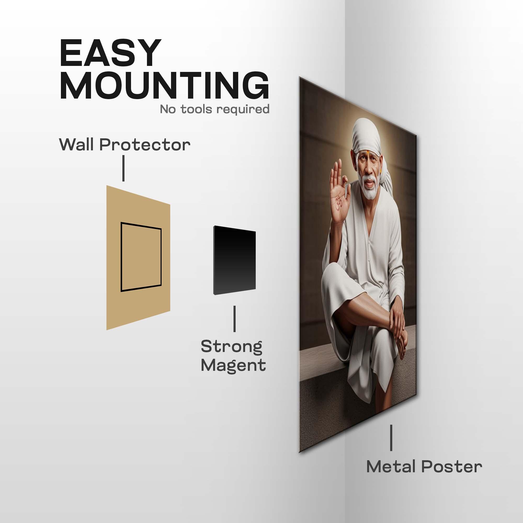 Bring home the Sai Baba: Grace of the Eternal Guide Metal Poster and let your surroundings be filled with faith, patience, blessings, and divine reassurance — every single day.