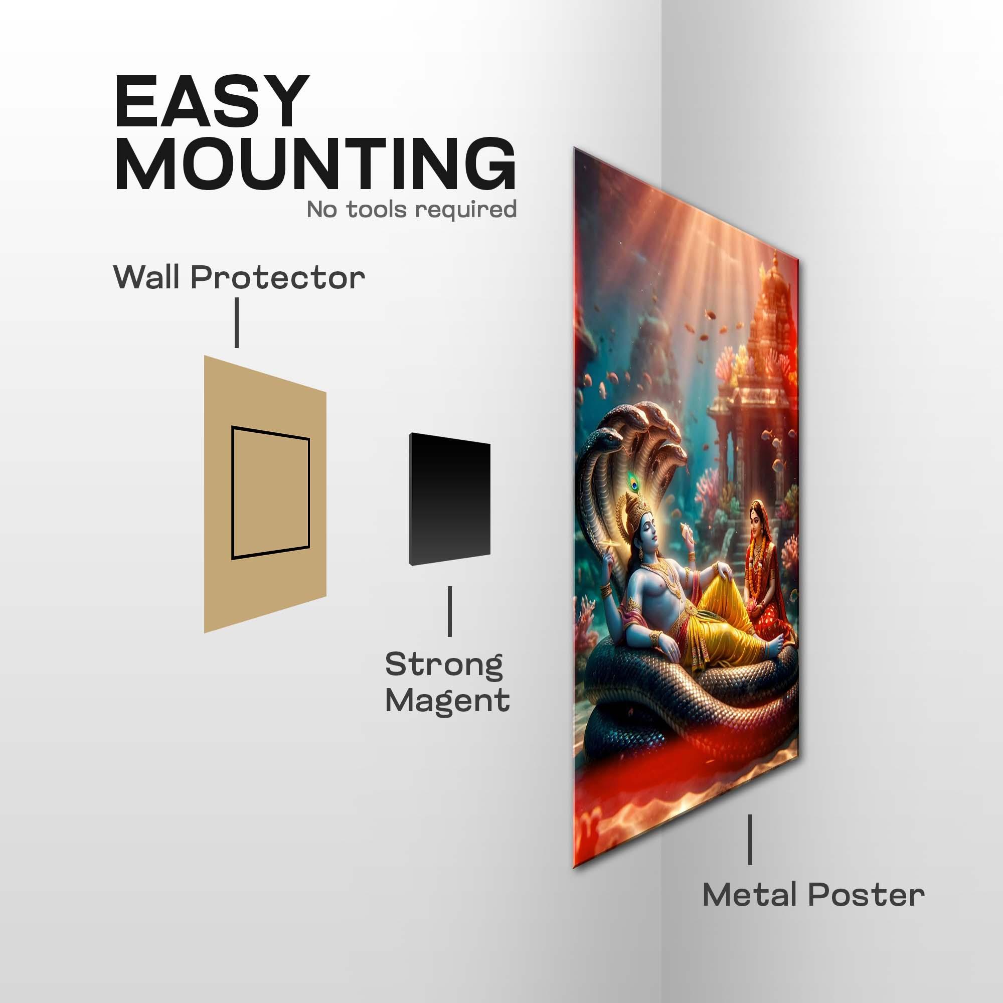Bring home the Vishnu Lakshmi: The Cosmic Ocean of Serenity Metal Poster and let its divine energy fill your surroundings with protection, prosperity, and timeless peace.